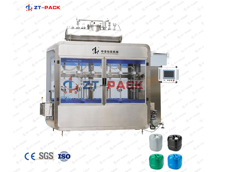 La llenadora de pesaje se utiliza para llenar líquido en un rango de 5 a 30 kg. Cuenta con un sistema de retroalimentación de peso debajo de cada cabezal de llenado para garantizar la precisión del llenado.