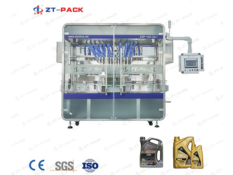 Esta llenadora es una máquina de llenado de tipo pistón con alta precisión de llenado. Se aplica al líquido de 0.5-5L para el llenado.