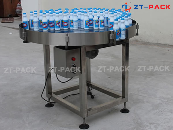 Esta mesa giratoria de acumulación alimenta automáticamente las botellas redondas a la línea de envasado para su posterior envasado. Las placas circulares tienen un diámetro de 1200mm y la velocidad puede ajustarse en función del proyecto. Las mesas giratorias de alimentación son ampliamente utilizadas en los sectores químico, alimentario, sanitario y agrícola.
